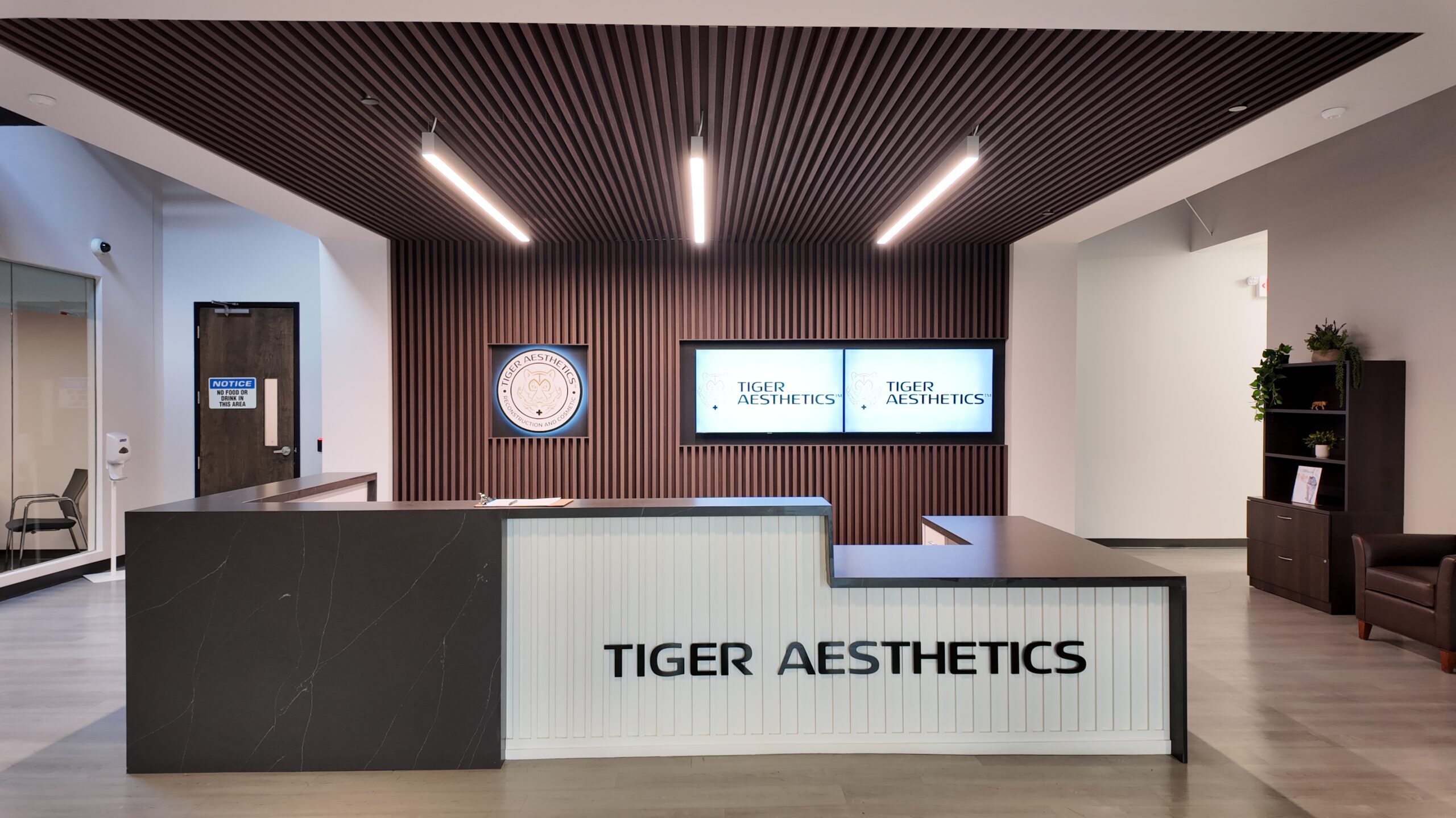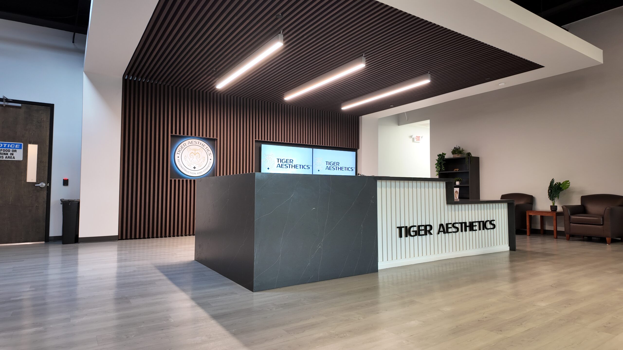 Multi-phase renovation and tenant fit-out for Tiger Aesthetics at Spring Mill Corporate Center.